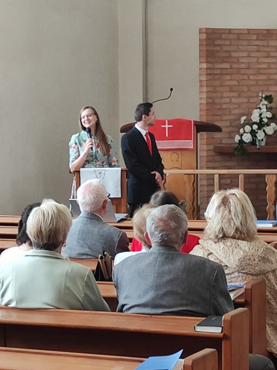 Nedeľa po Vstúpení, 21. mája, bola výnimočnou príležitosťou na intenzívnejšie spoločenstvo. Vďaka ochotným sestrám sa prítomní po službách Božích hneď nerozišli, ale zostali v rozhovoroch pri štedrom občerstvení. Po prestávke na občerstvenie sme sa vrátili do lavíc na prezentáciu cesty po Izraeli a Jordánsku, ktorú absolvovali ako účastníci zájazdu sestra kaplánka s bratom kaplánom. V prezentácii predstavili najmä biblické miesta pretkané súvisiacimi biblickými textami a tiež ďalšie miesta histórie, či moderného izraelského štátu.